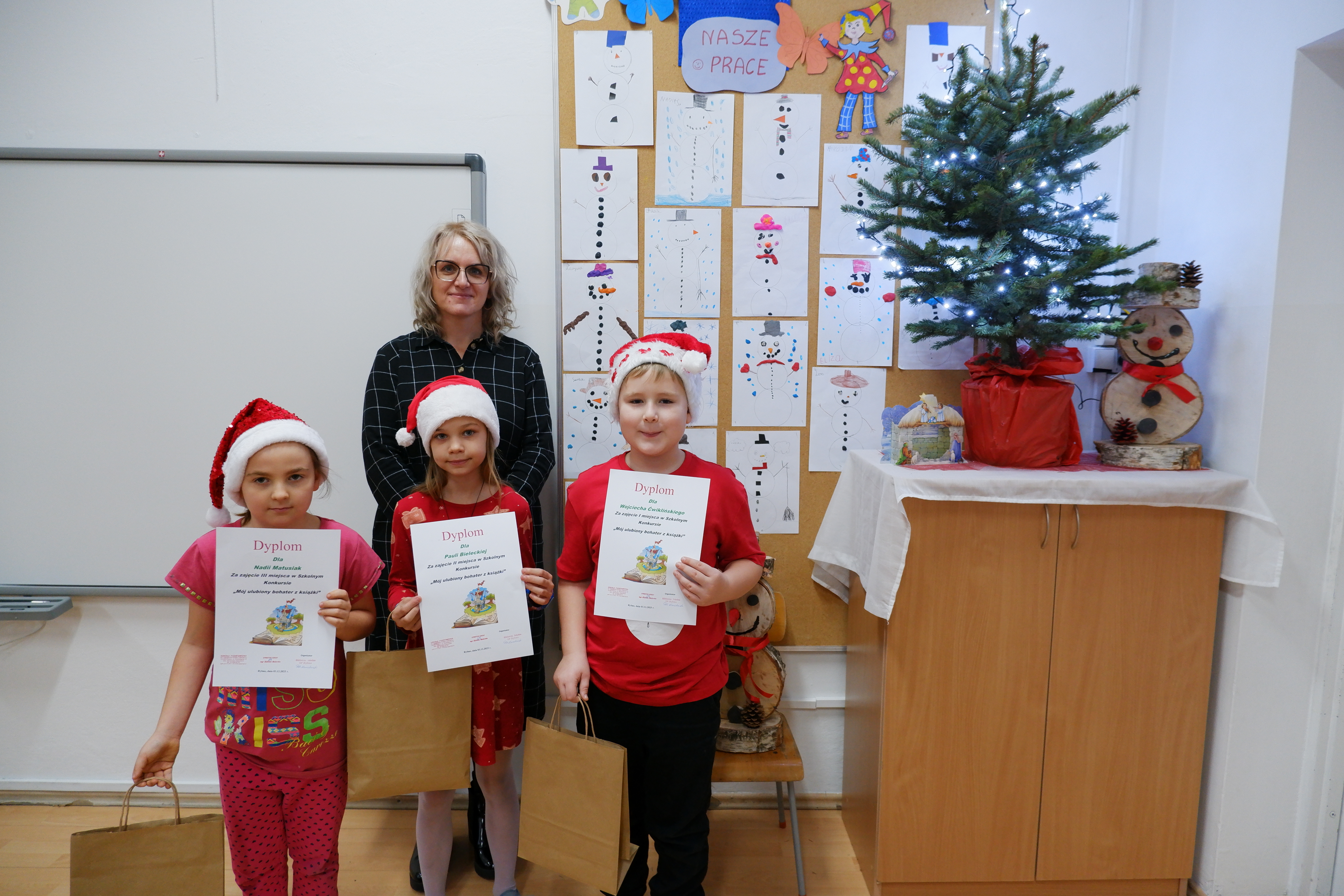 W grudniu odbył się konkurs plastyczny dla uczniów klas pierwszych pod hasłem „Mój ulubiony bohater z książki”. Celem konkursu było rozwijanie wyobraźni dzieci, zachęcanie do sięgania po literaturę oraz kształtowanie umiejętności plastycznych poprzez twórcze przedstawienie postaci literackich. W konkursie wzięli udział uczniowie klas I a i I b, którzy przygotowali barwne i pomysłowe prace. Jury oceniło oryginalność , estetykę oraz zgodność z tematem.