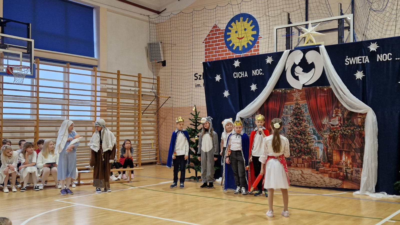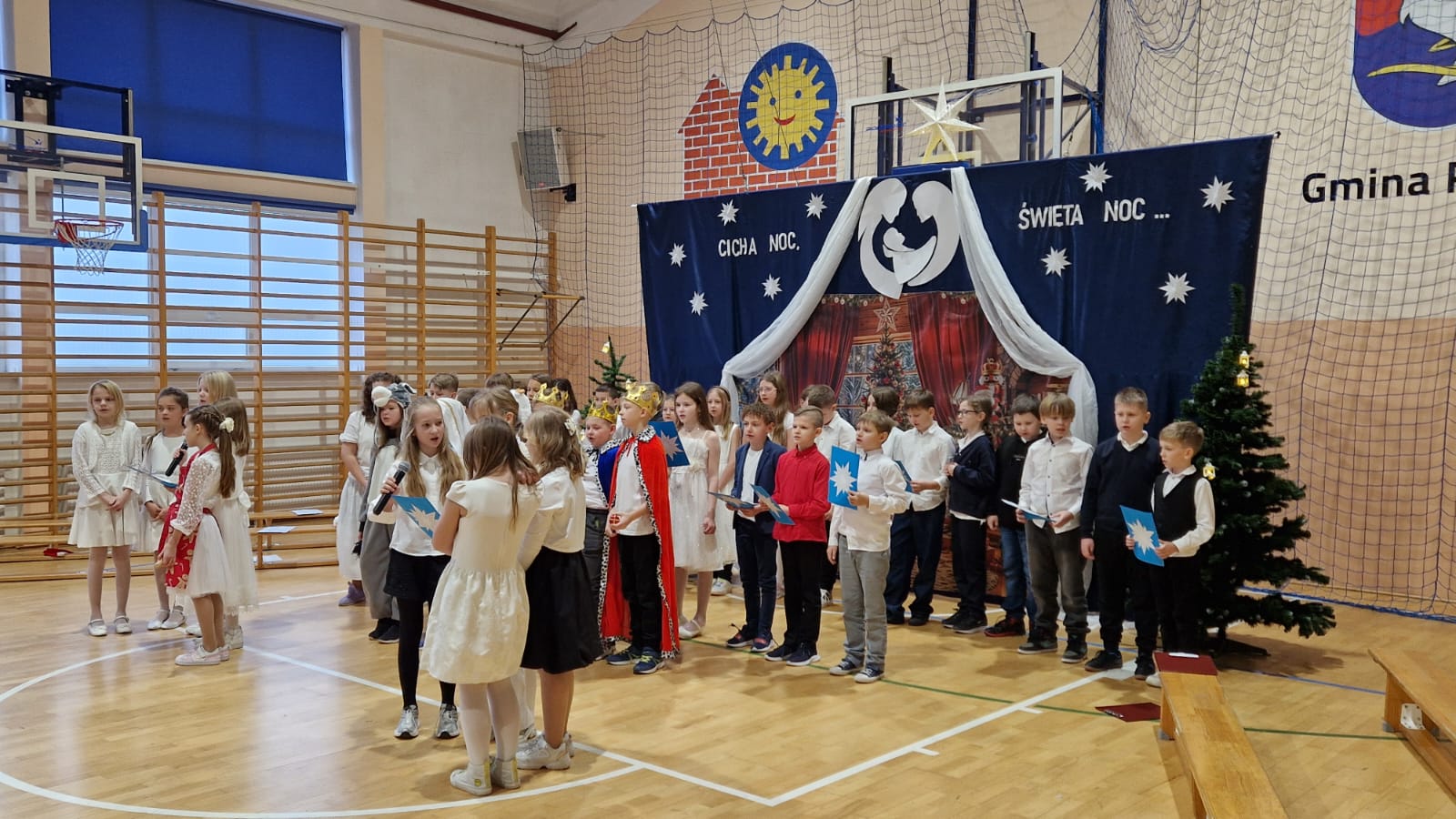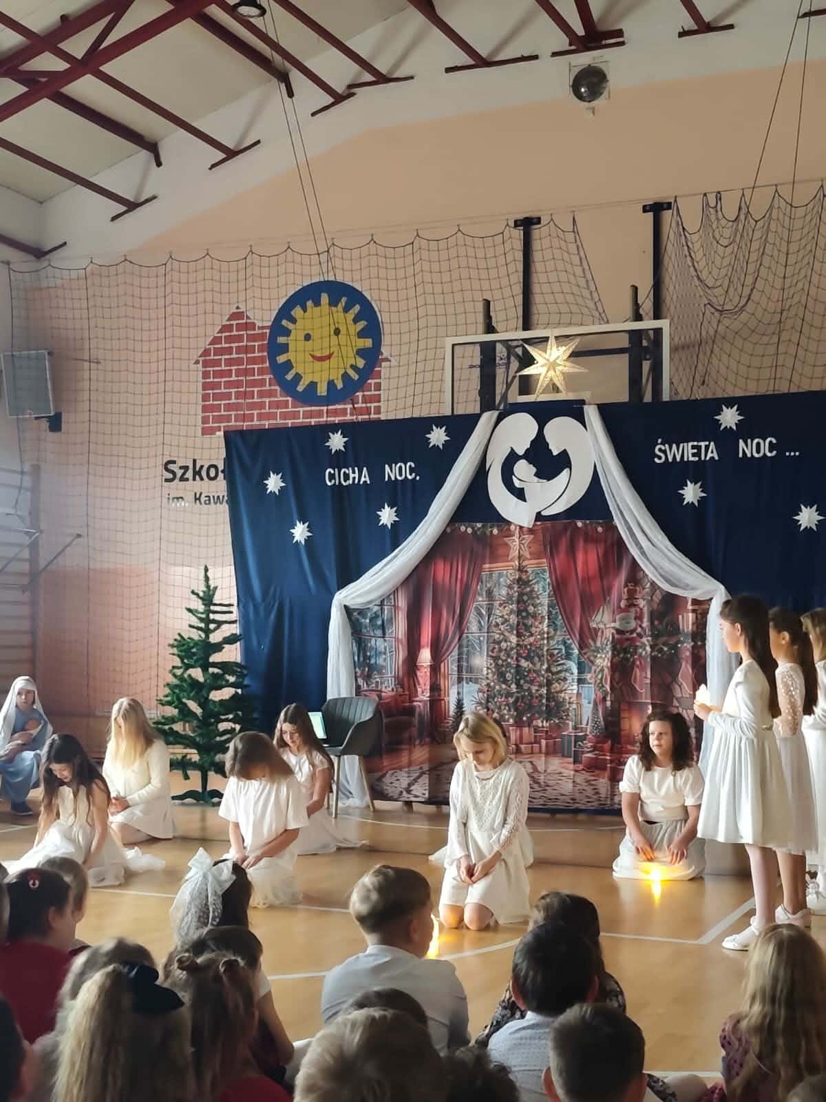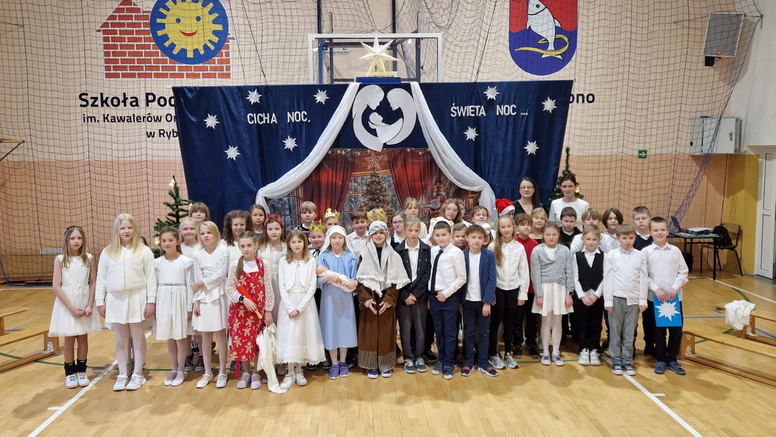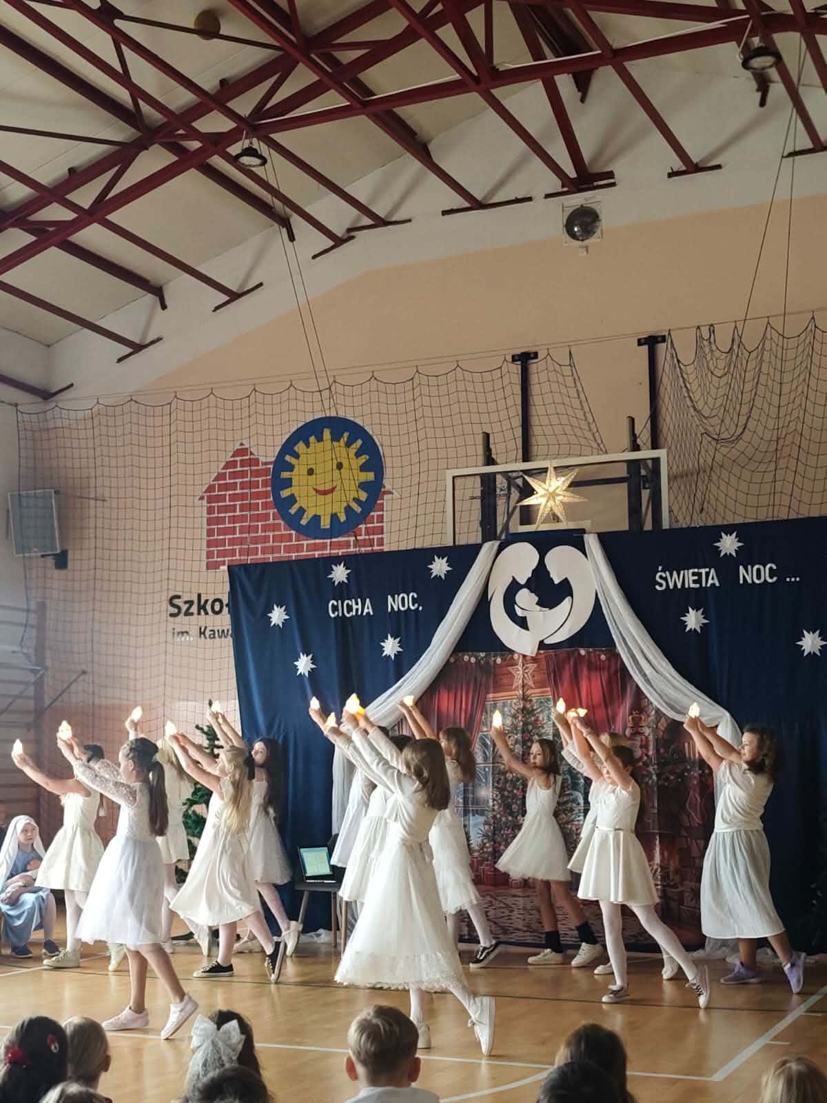 W naszej szkole odbyła się uroczysta Wigilia szkolna, która wprowadziła całą społeczność szkolną w wyjątkowy, świąteczny nastrój. Uczniowie klas czwartych wraz z wychowawczyniami przygotowali piękne przedstawienie z okazji Świąt Bożego Narodzenia. Jego głównym przesłaniem było zachęcenie do refleksji i ponownego wykorzystania szansy, aby zatrzymać się na chwilę i przypomnieć sobie, co w życiu jest naprawdę ważne oraz jak szybko i niepostrzeżenie upływa czas. Młodzi artyści zachwycili widzów starannie przygotowanym występem. Nastrojowy taniec, rozświetlony blaskiem lampionów, oraz wspólne kolędowanie wprowadziły wszystkich w atmosferę radości, spokoju i nadchodzących świąt. Po zakończeniu części artystycznej uczniowie udali się do swoich klas, gdzie odbyły się Wigilie klasowe. Był to czas wspólnego świętowania, składania życzeń, rozmów i dzielenia się świąteczną radością w gronie kolegów, koleżanek oraz wychowawców